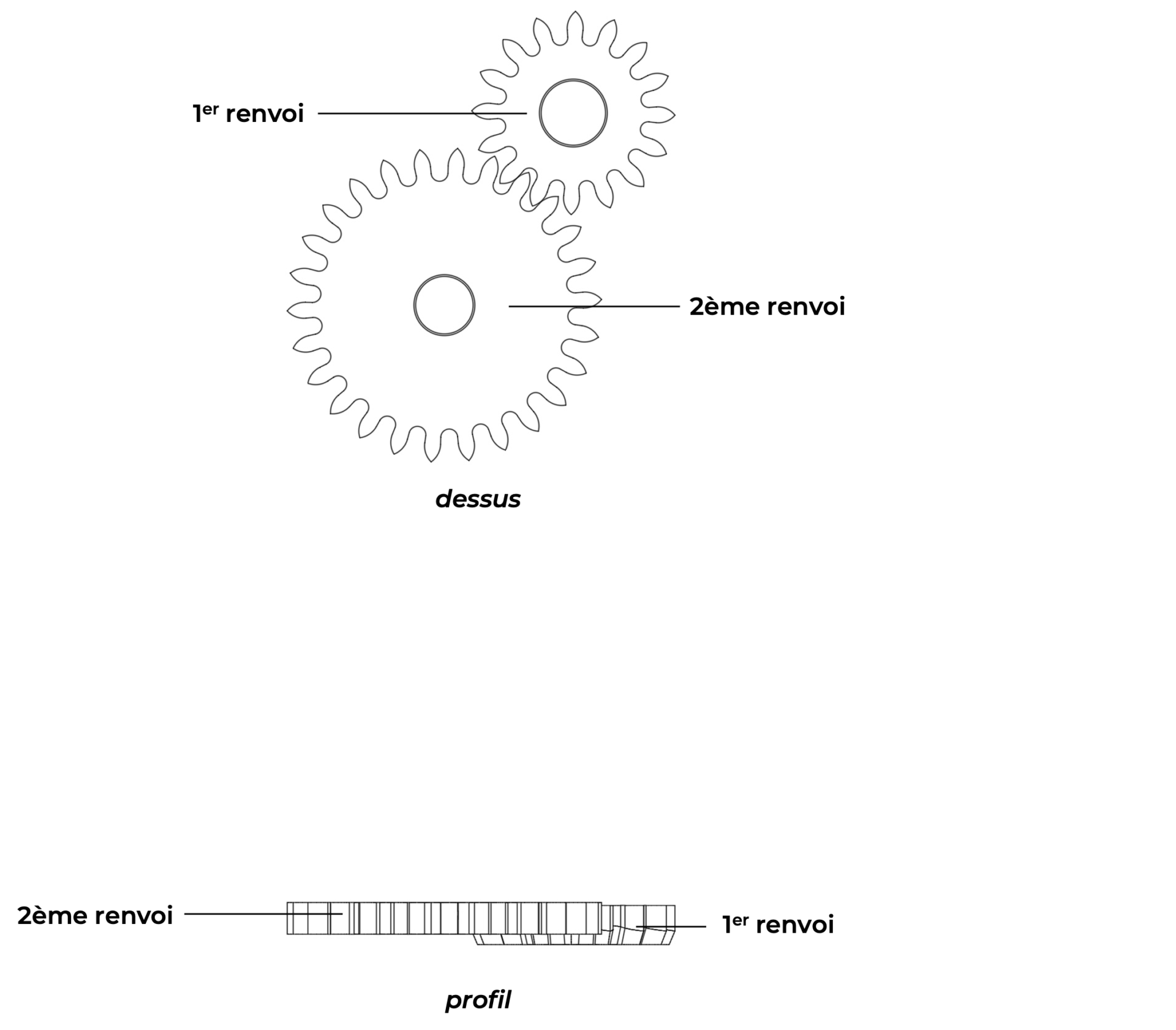 Techniquement, le renvoi est un engrenage dans sa plus simple expression. Il s’agit d’un simple cylindre d’acier denté. Les engrenages étaient déjà connus des grecs au 6ème siècle avant JC. Les premiers engrenages mécaniques connus datent du 4ème siècle avant JC et sont apparus en Chine. Avec les renvois (et les engrenages en général), les horlogers se sont contentés d’appliquer des principes mécaniques connus.