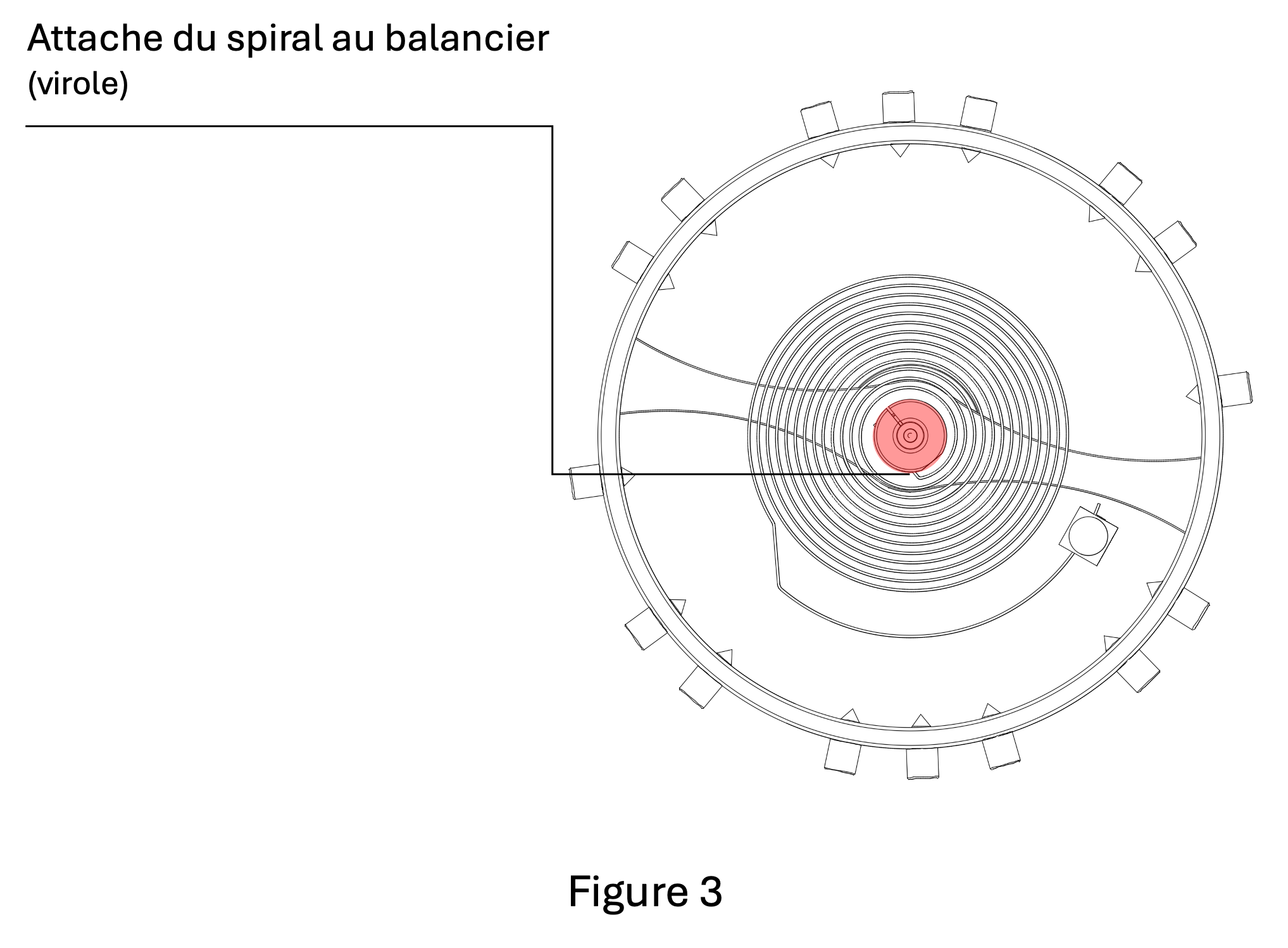 L’organe régulateur des montres mécaniques principalement d’un volant d’inertie appelé balancier et d’un ressort en forme de spirale d’Archimède appelé spiral. Le balancier est riveté sur son axe. Sur ce même axe est fixée l’extrêmité intérieure du spiral par l’intermédiaire de la virole (Figure 2 & Figure 3).