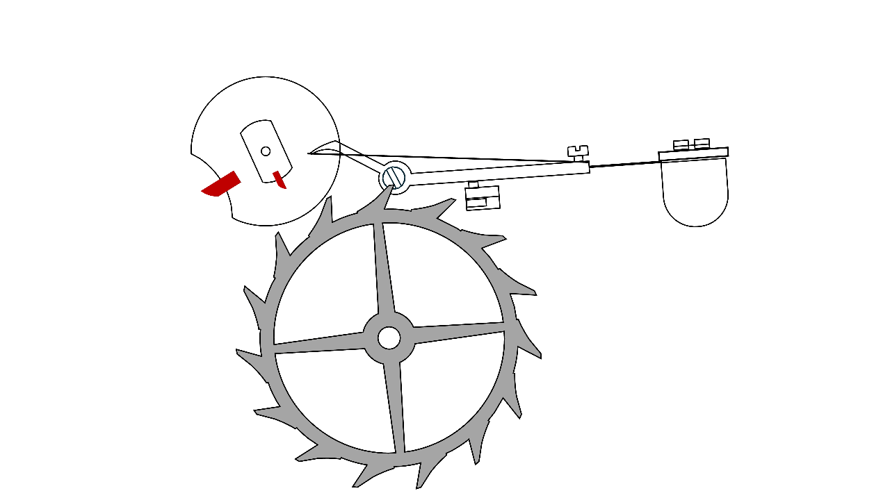 Dans ce type de mécanismes, l’une de ses pièces, liée à l’organe régulateur, reste en contact permanent avec la roue d’échappement lorsque l’échappement est bloqué.