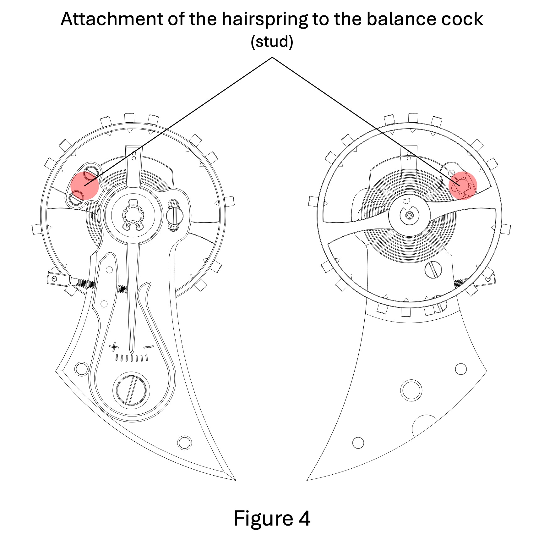 The outer end of the hairspring is fixed to the balance cock by means of the stud (Figures 2 & 4).