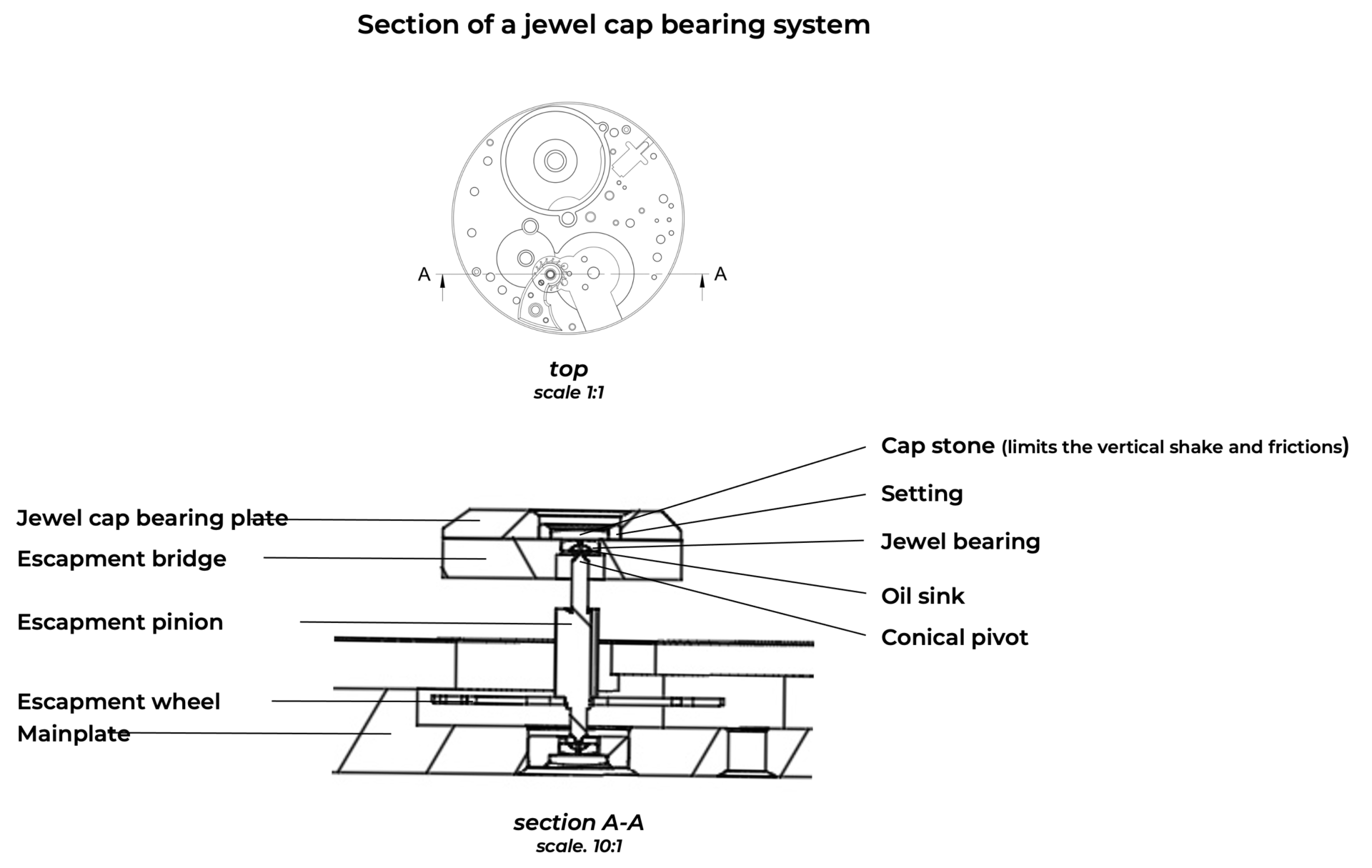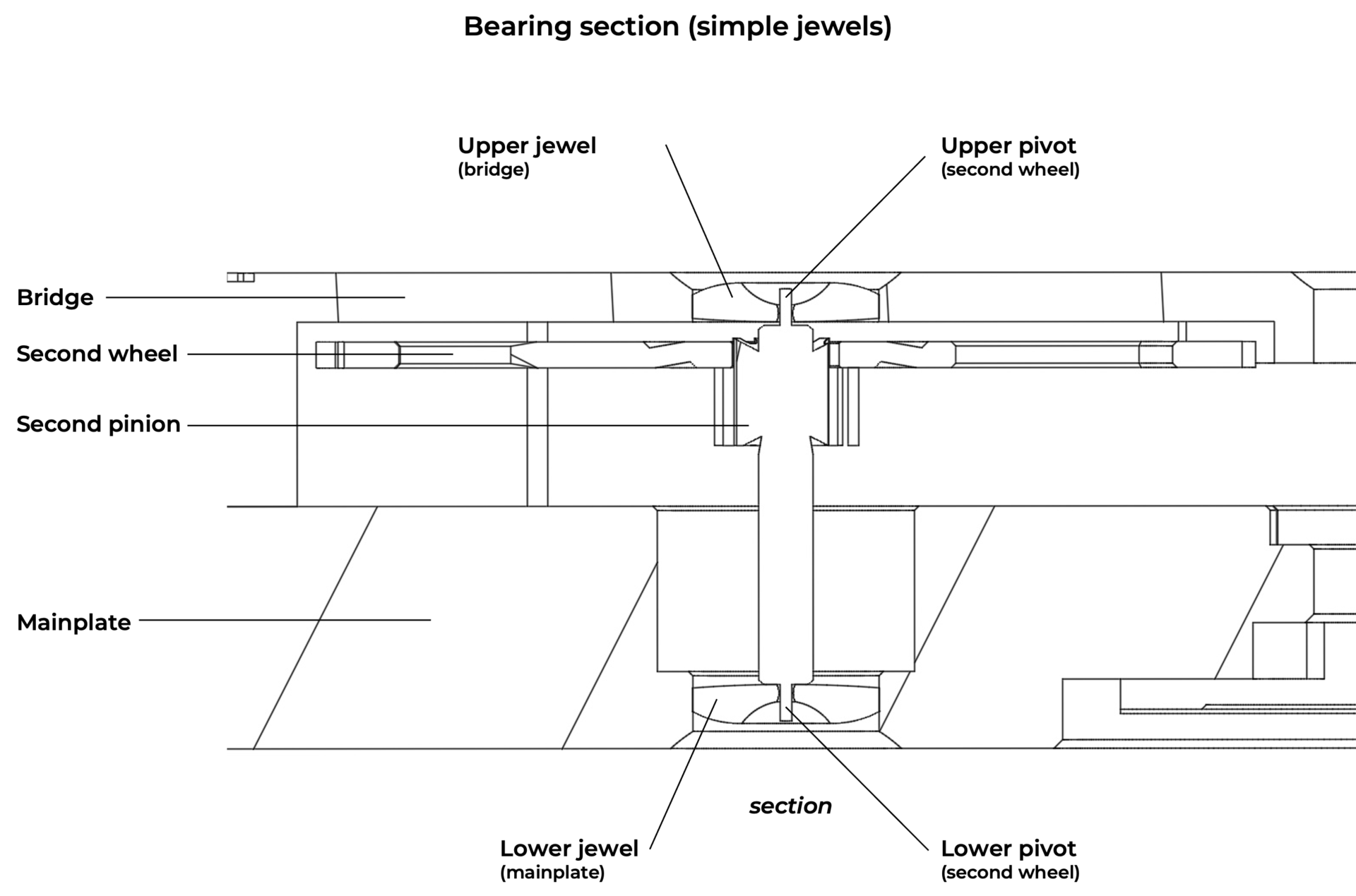 Jewels are used as pivot bearings for the various moving parts of a movement. They enable these parts to pivot freely (usually between the mainplate and a bridge) by optimizing friction coefficients and reducing pivot wear. Once made of natural rubies, watch jewels are now typically made from synthetic corundum.